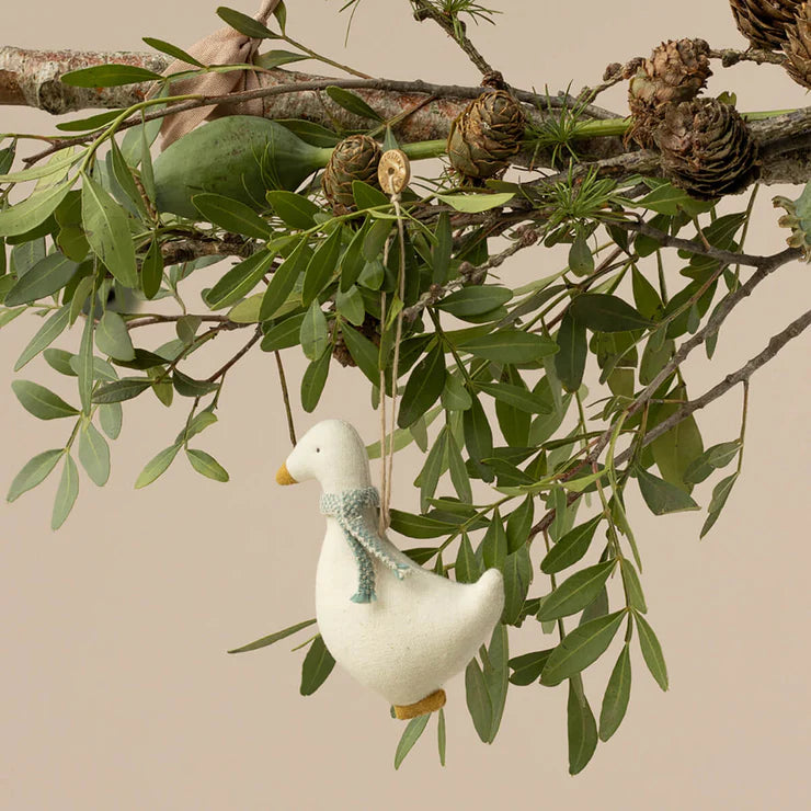Add charm to your Christmas tree with this beautiful Maileg goose ornament in blue. Crafted from quality cotton with detailed embroidery and exclusive finishing touches. Perfect for creating a personalized Maileg ornament collection. Measures 8.5cm tall.