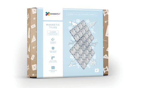 Fostering creativity, imagination and learning through PLAY, this pack provides endless possibilities. As a large building plate with numerous magnet points, Base Plates expand the creative potential of magnetic tile play – supporting the creation of taller towers, sturdier castles and dollhouses, inspiring various forms of play such as fine motor skills and magnetism exploration (attaching tiles to each magnet point), symbolic play (creating ice cream/market stands, tables and chairs for tea parties), small world play (assigning the tiles as grass, ocean or sky) and mazes, just to name a few.