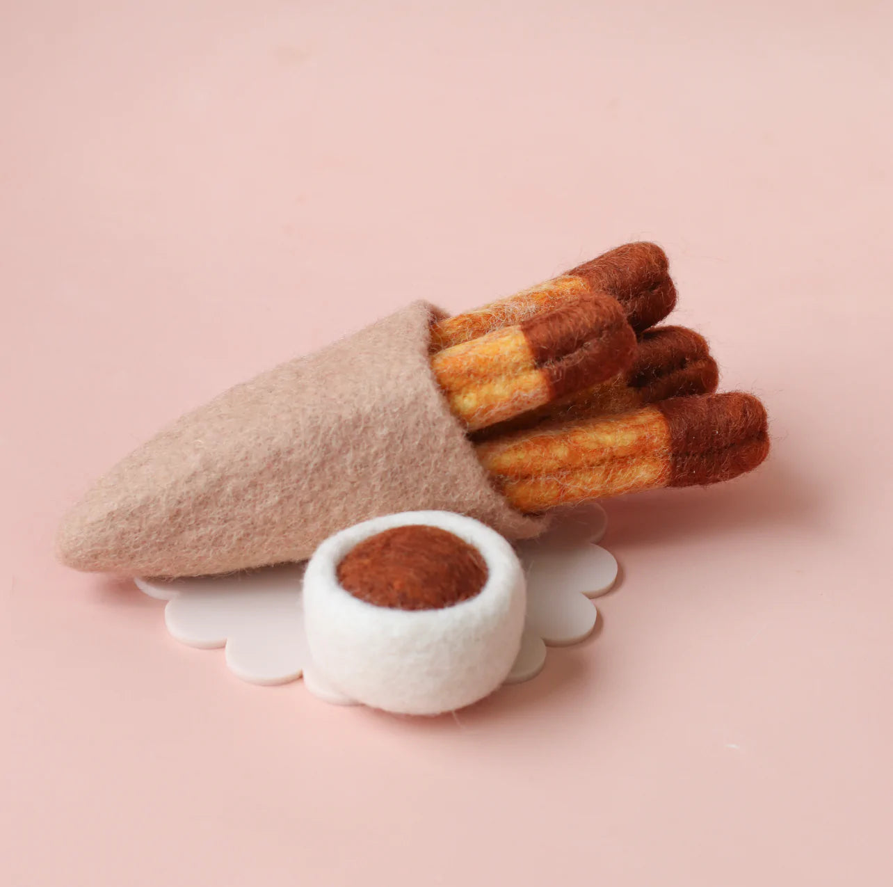 Five piece set including 4 x churros, 1x bag and 1 x pot of chocolate