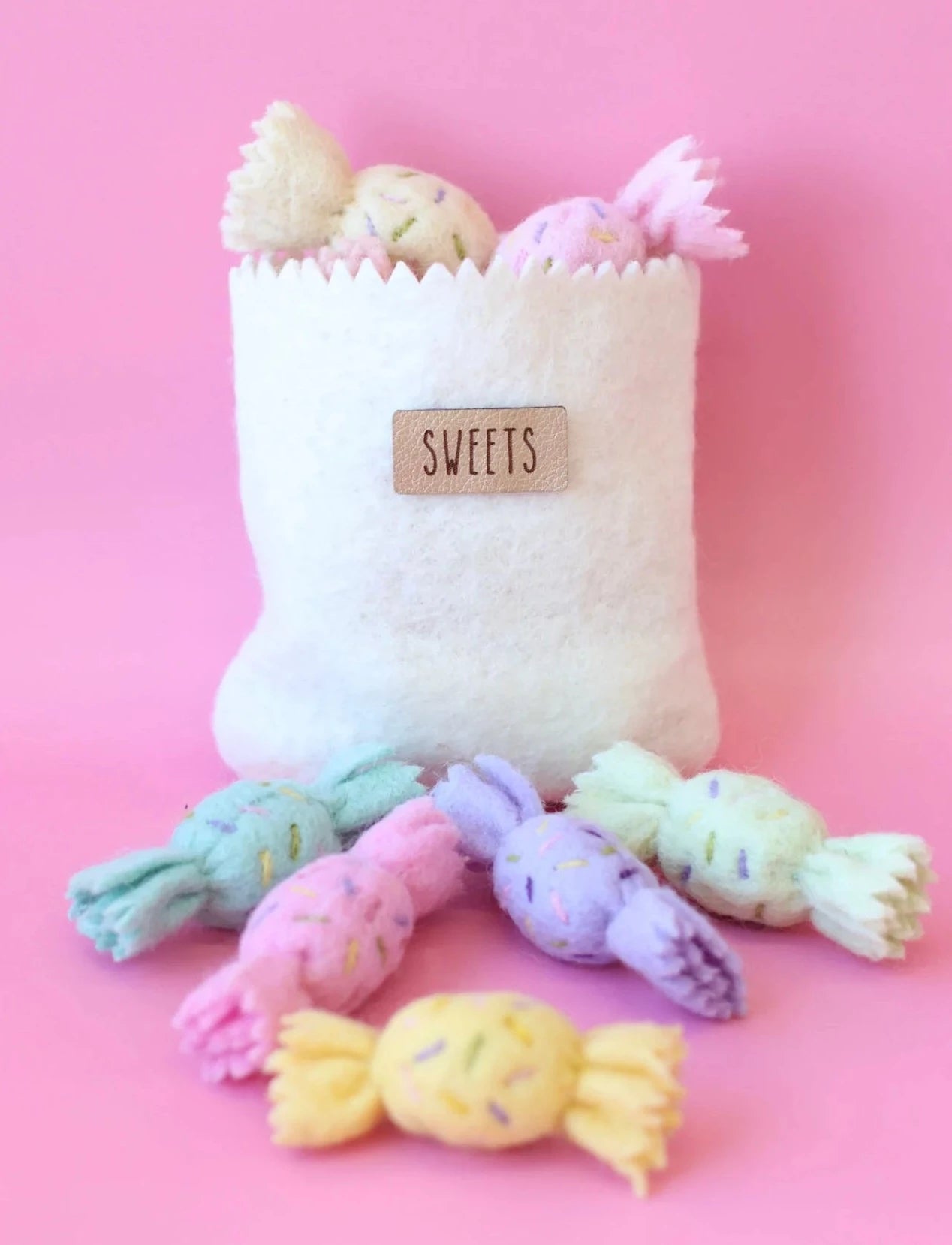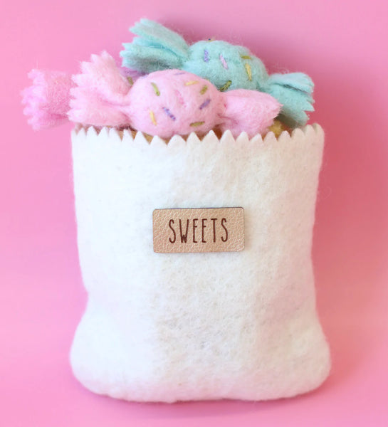 Each individual felt sweet has been carefully crafted using highly skilled needle felting techniques. Our sweets have been made bigger than an original lolly for safety reasons