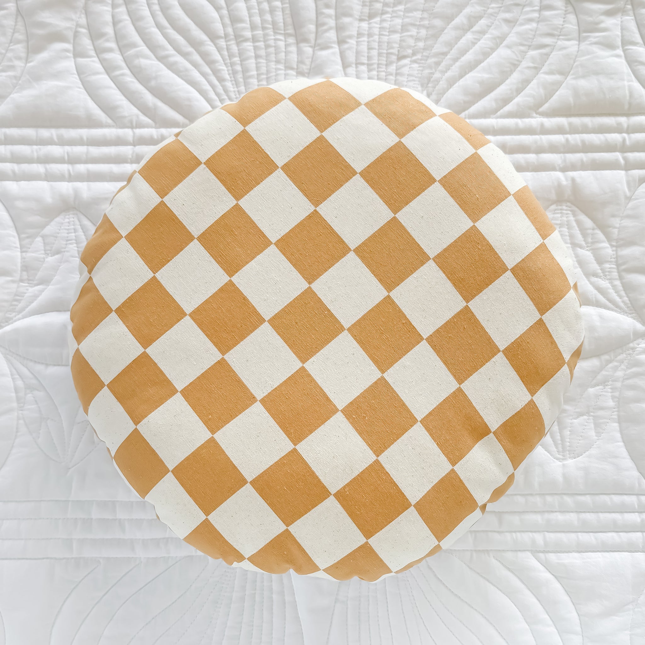 Mustard and White Checkered Round Cushion - Little Bambino Bear