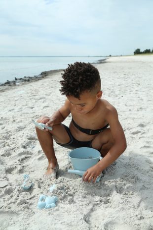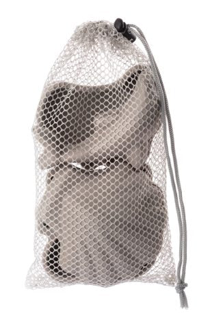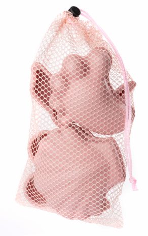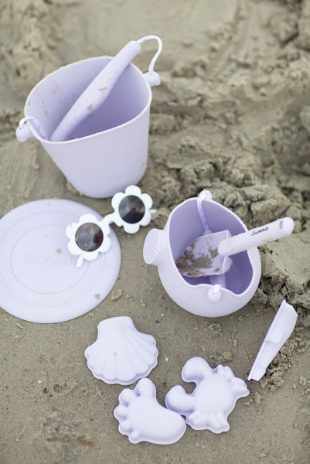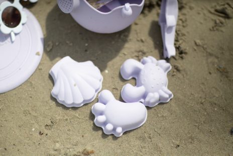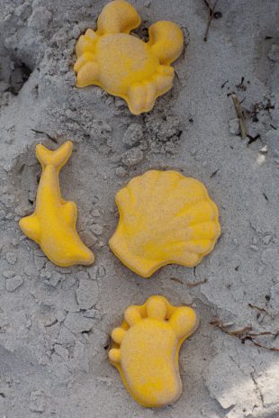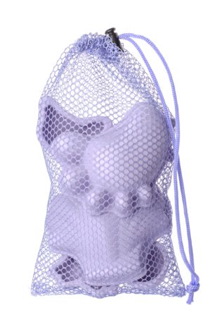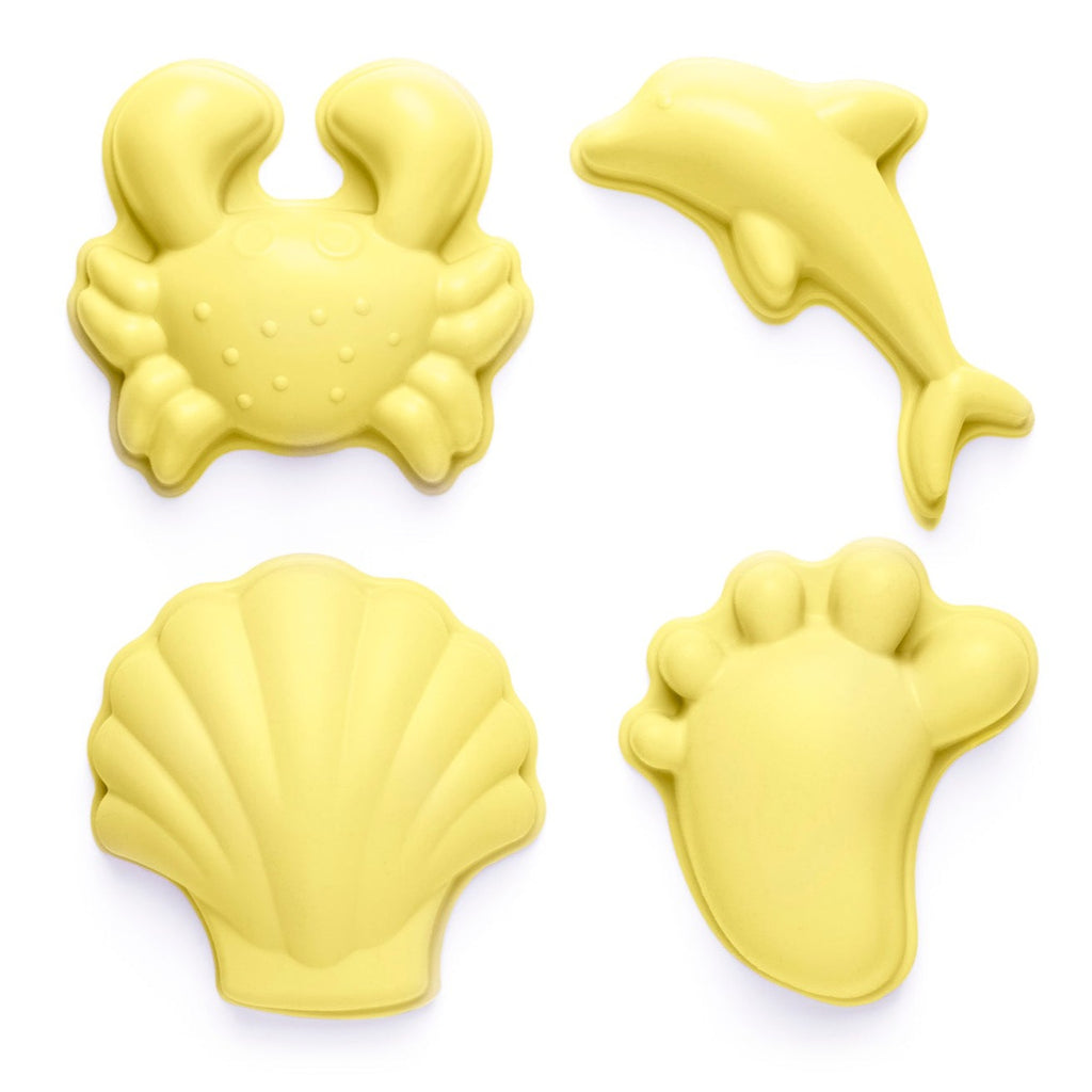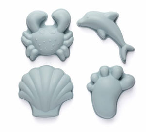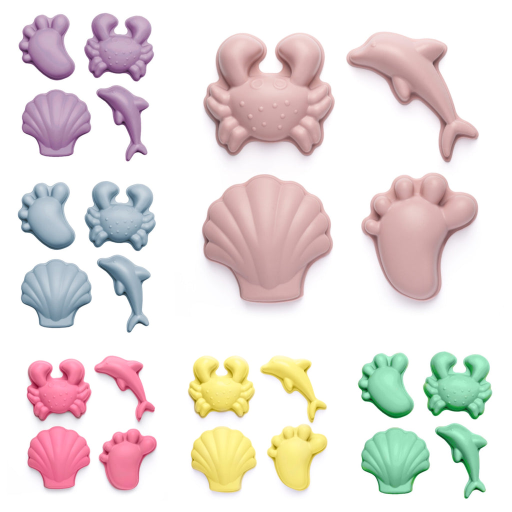 A set of 4 super soft silicone sand moulds, all wrapped up in a net bag.